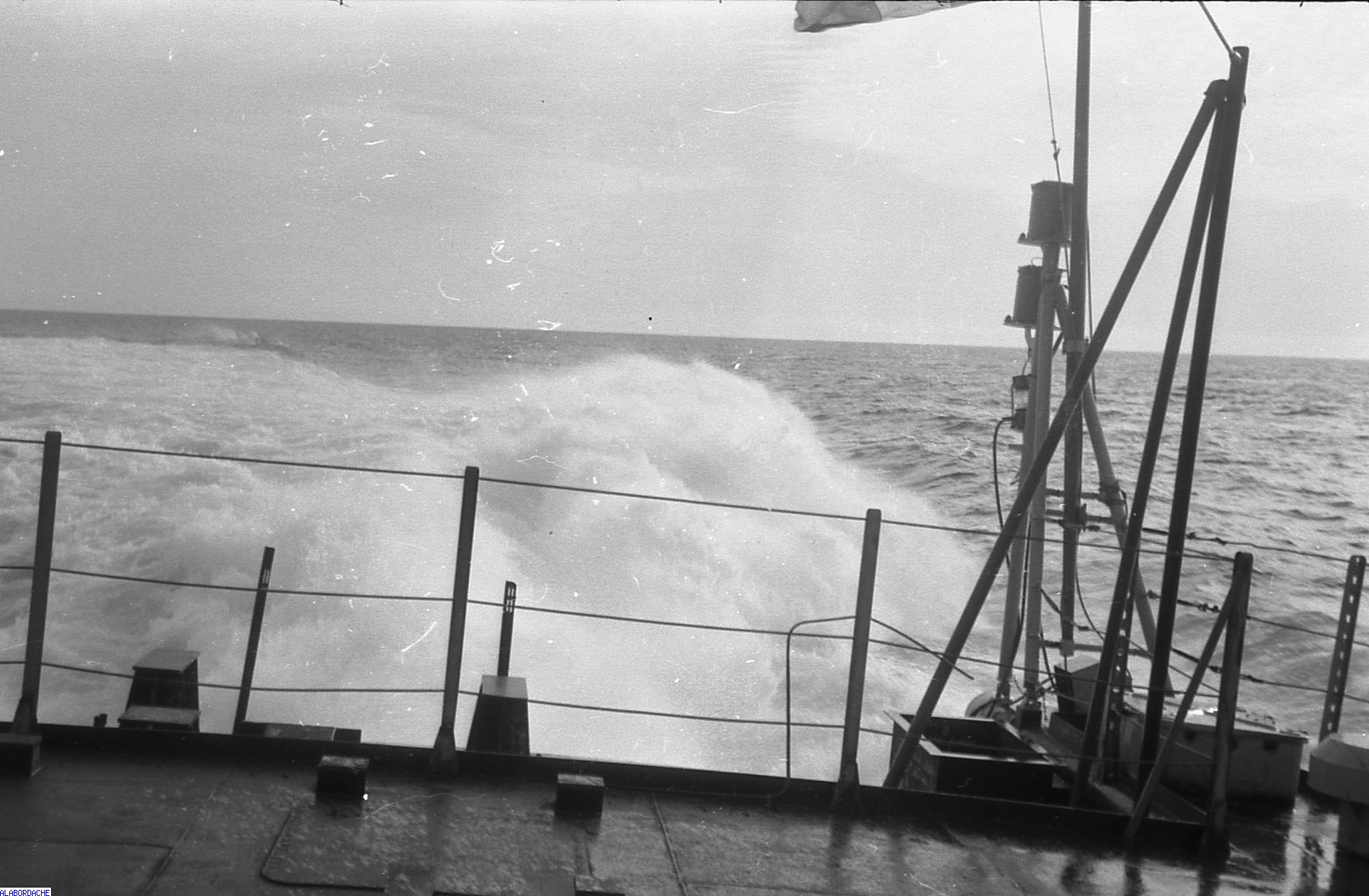 |  Photo prise en 1960 lors des essais de giration au large de Lorient. Guy BOUAT