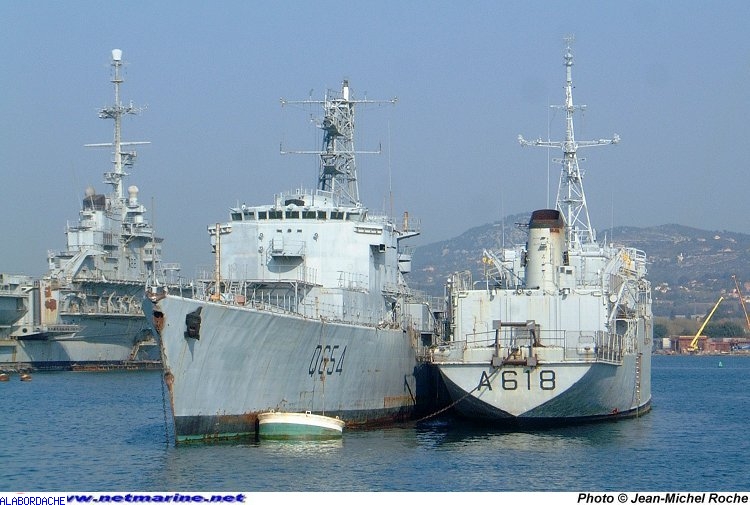 Cimetière marin à Toulon : Vauquelin et la Rance à couple. En arrière plan le Clémenceau (photo : QM2 Fus)