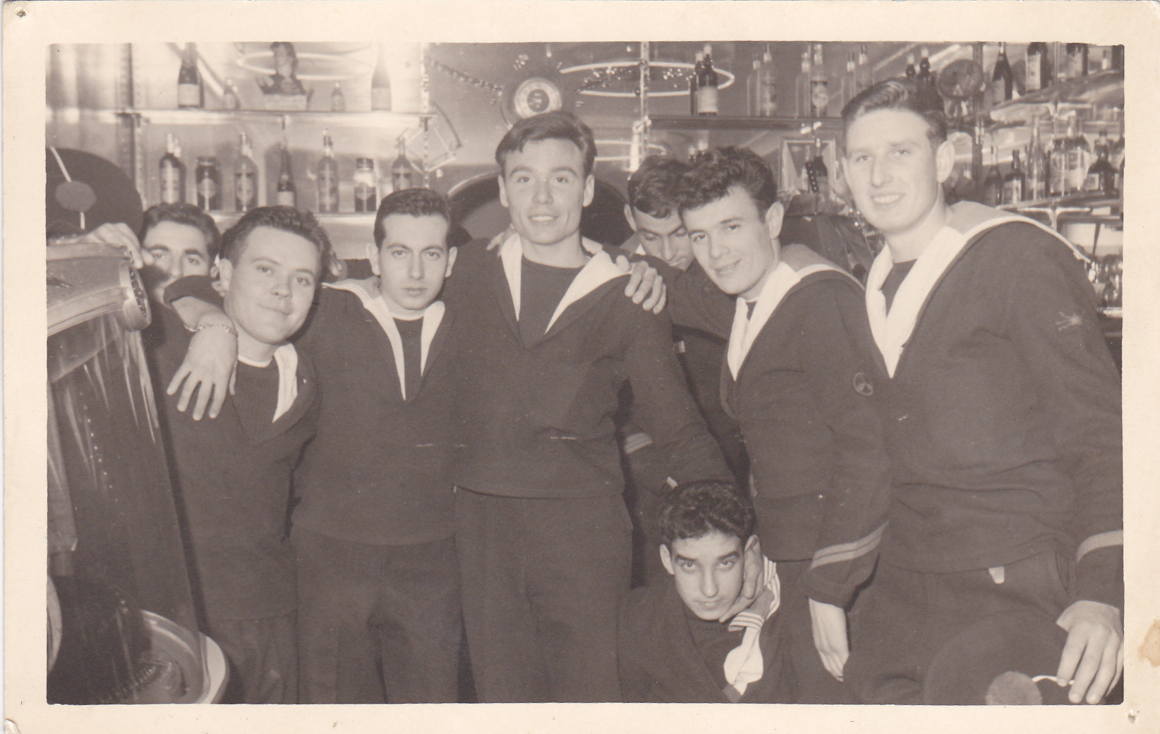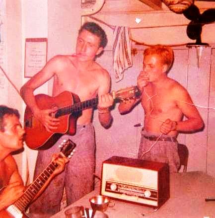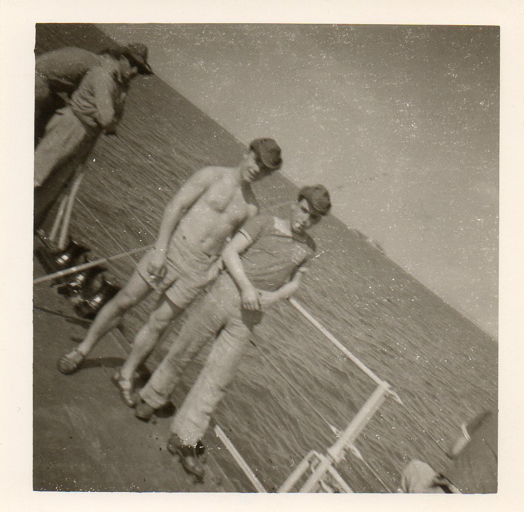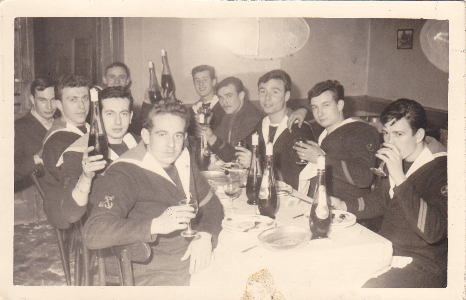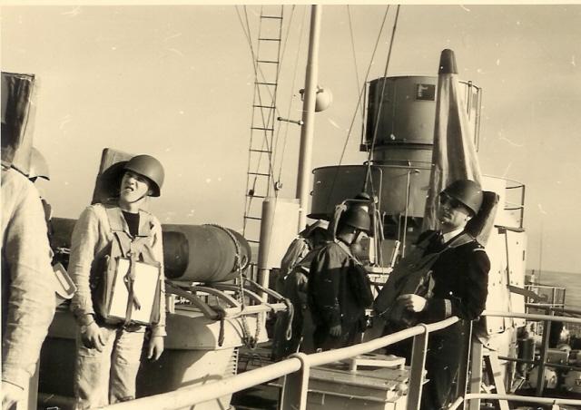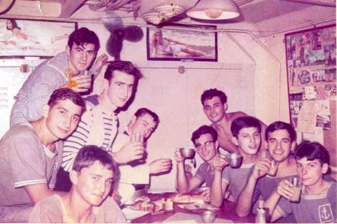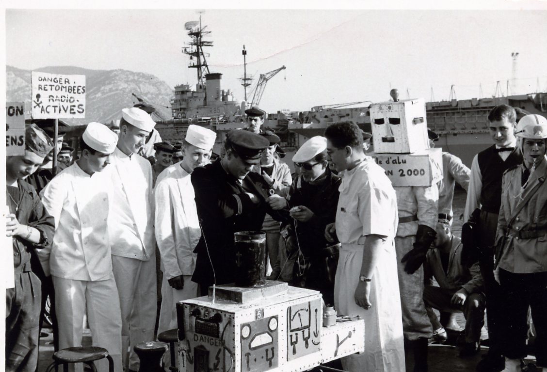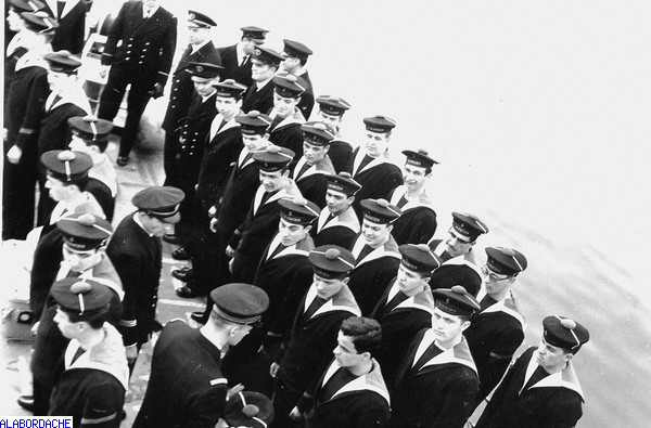 Mecanos sur la plage arrière 1966 sur l'Alsacien