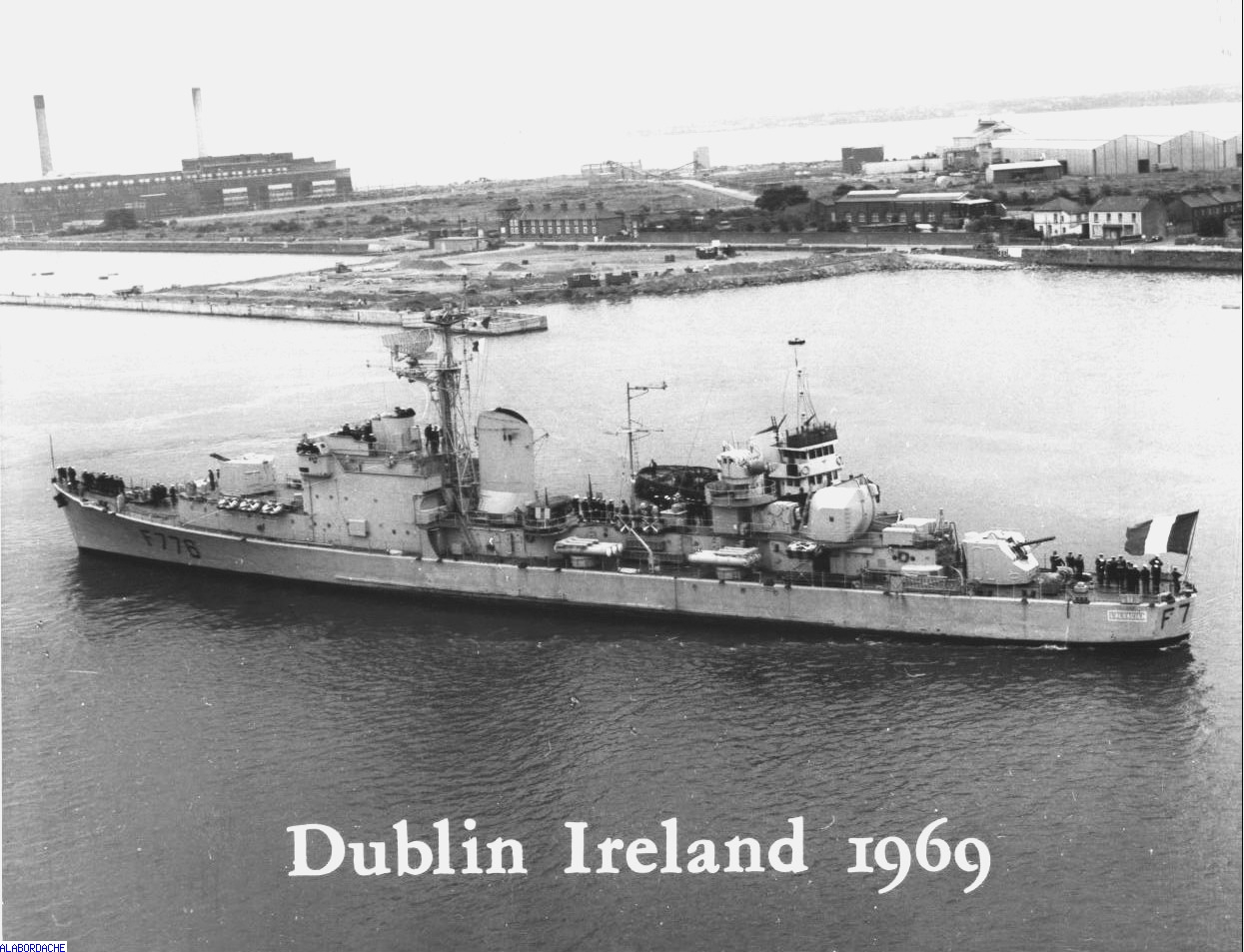 |  ER L'ALSACIEN en 1969 , escale à Dublin lors d'une mission " Gants Blancs Ecole Navale " de tête ...Toulon , Lisbonne ? aller ou retour , Brest,Dublin,Odda,Oslo,Amsterdam, Brest ...Toulon .