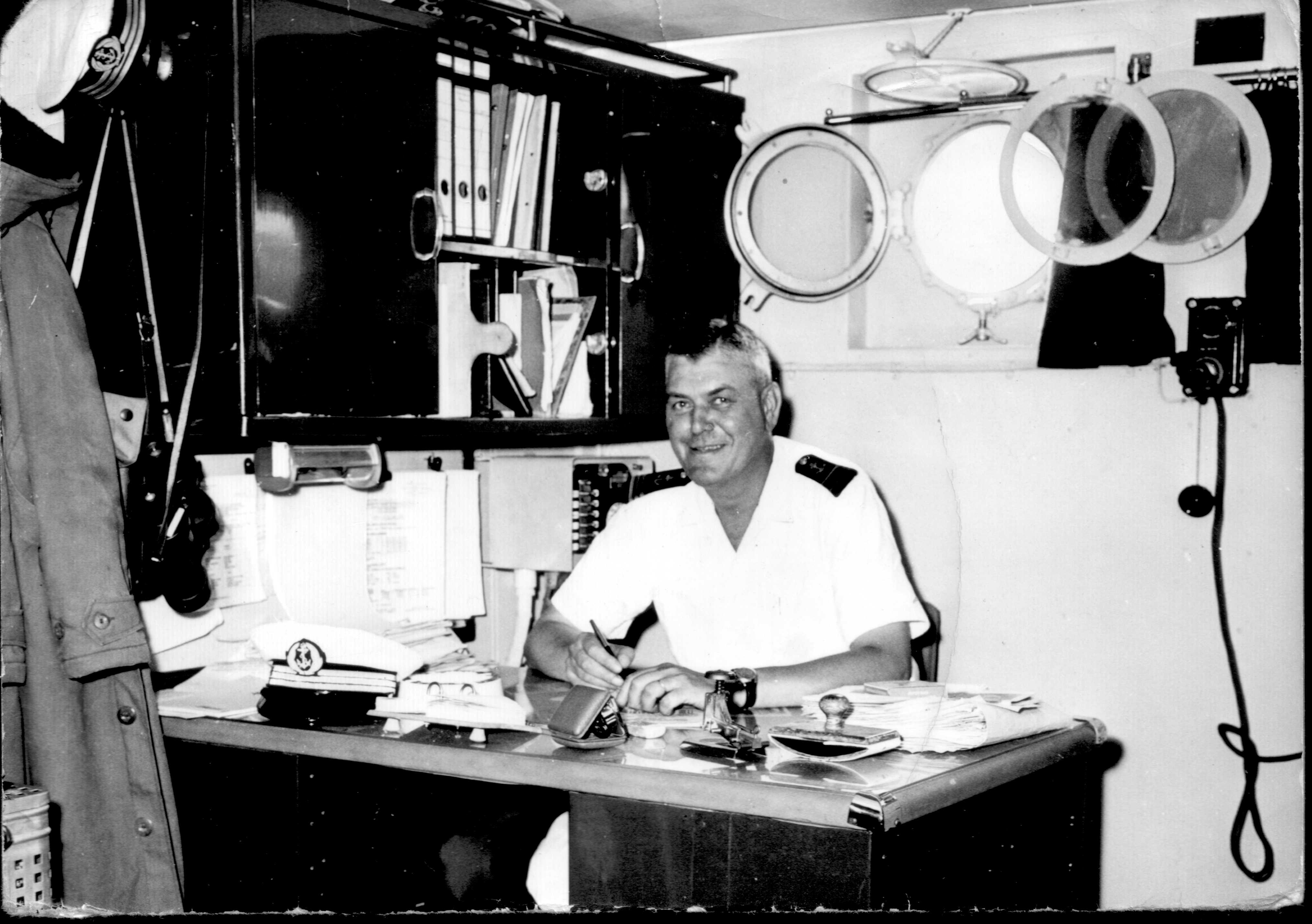 le lieutenant PEYRON commandant en second de l'ELORN,prêtre du bord à l'époque ,retour a la vie de civil apres son passage dedans la Marine
