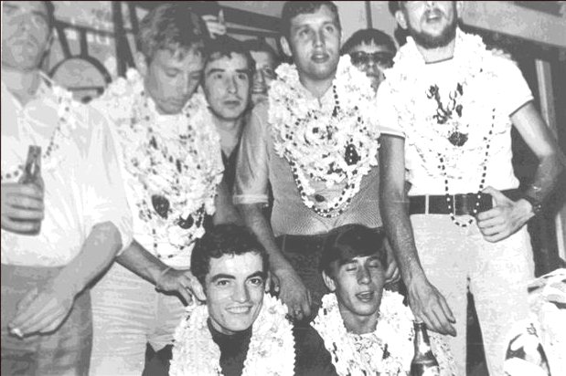 Les deux en blanc, de gauche à droite: Jean François Boixo (Johnny le touriste) et Édouard Gorski (Ted)