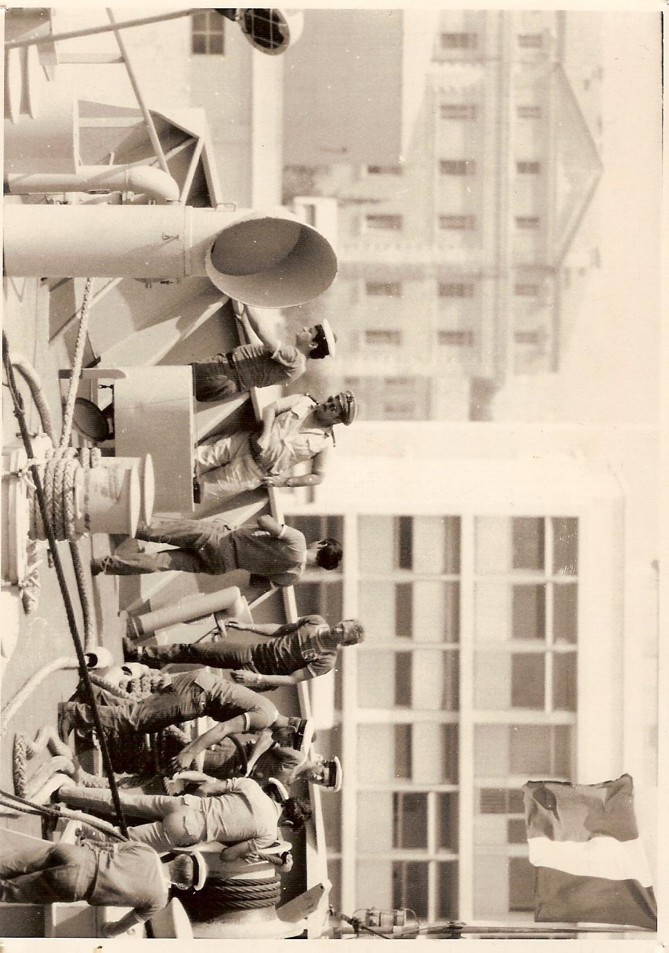 |  photo prise en 1968 au retour de la force alfa du pacifique (le jeune sur l'extremite de la passerelle : c'est moi)
