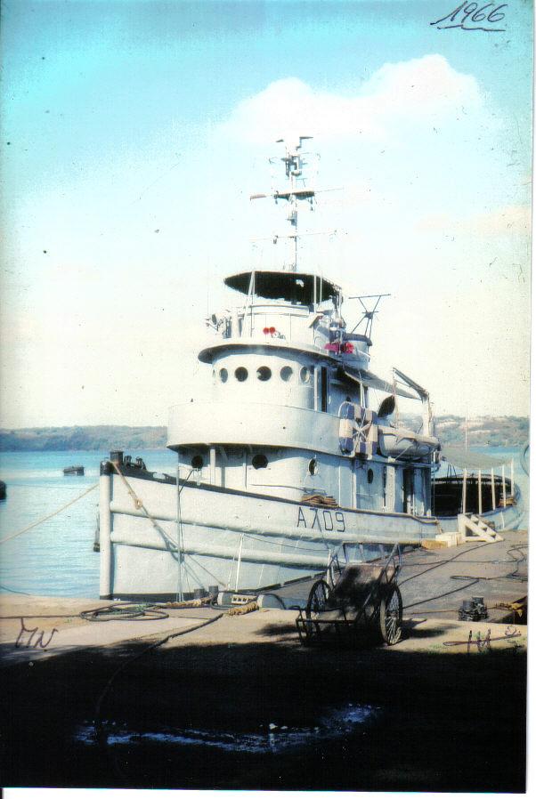 |  Remorqueur côtier MALABAR (photo Marine Nationale comme celle de l'équipage, le jour de l'inspection générale 1965)