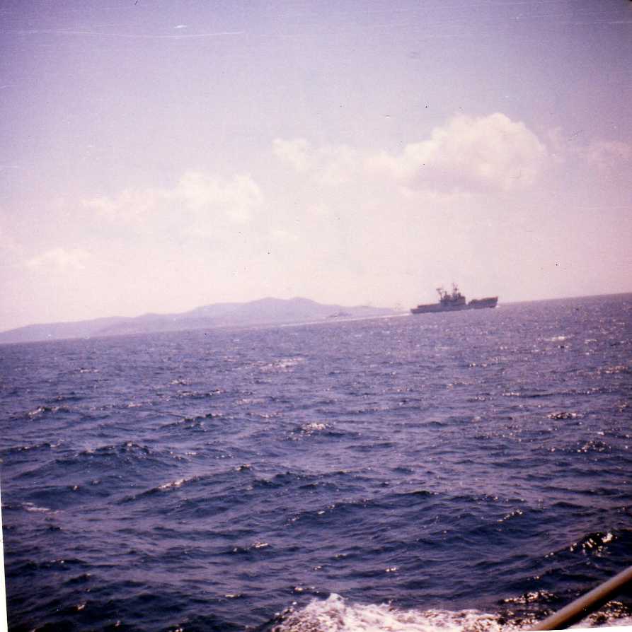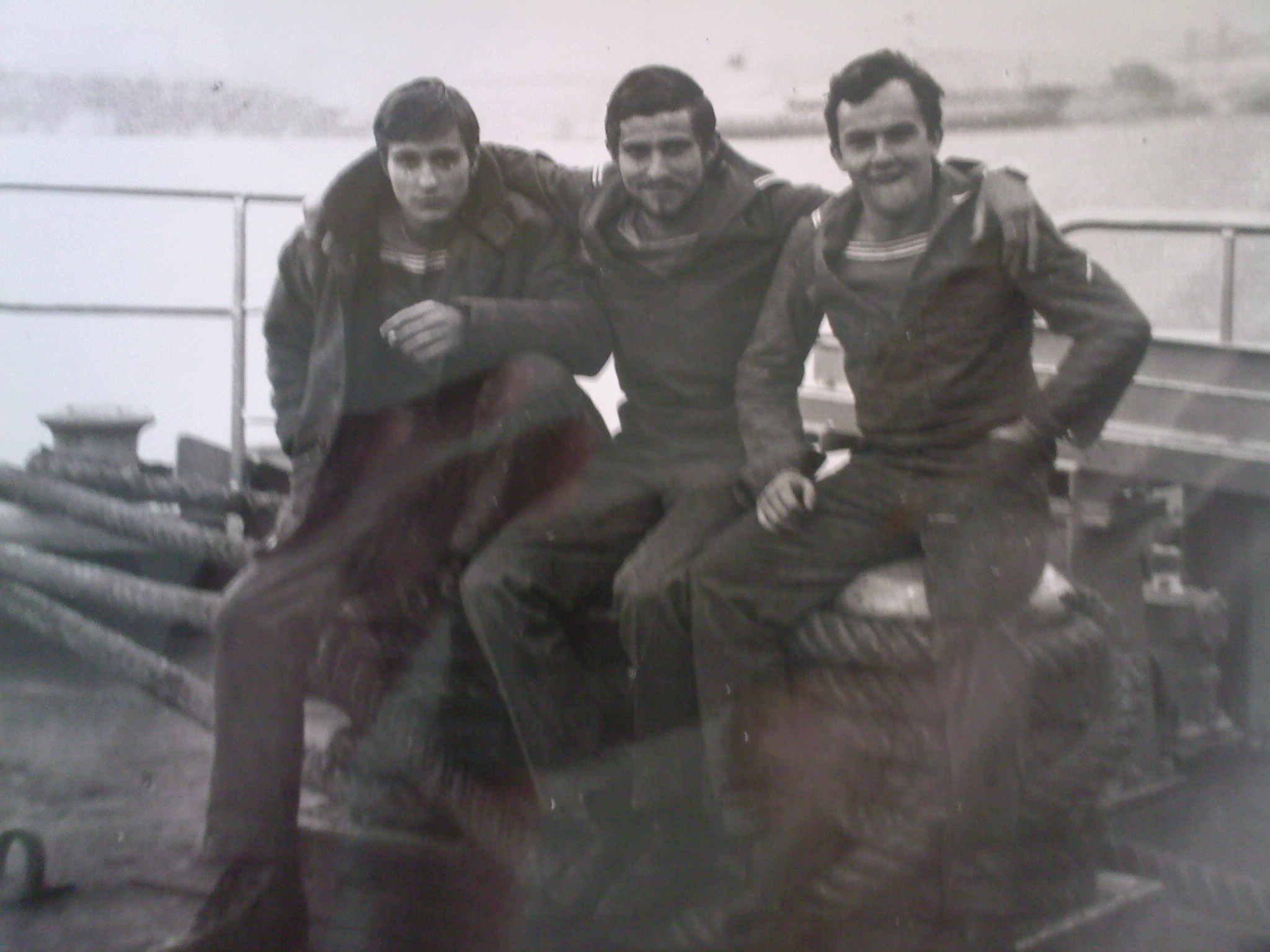 Photo prise a bord du B.S.L.RHIN le 4 mai 1977 au large de l'ile du levant DD.boulanger a bord du RHIN