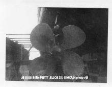 Le Simoun à son entrée en service. Les cheminées n'ont pas encore été raccoucies. Les masques des pièces de 130 mm sont peu enveloppantes et 1 canon de 75 mm AA est disposé sur un petit roof entre les 2 affuts triples de tubes lance-torpilles. Il sera remplacé par 2 canons de 37mm AA.