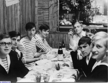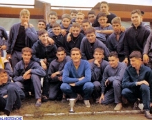 1970/1971 : On fête la coupe avec l'Aumonier.