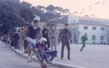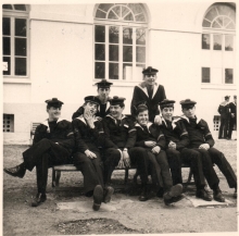 1969 .De retour au gem avec la Mélusine.copains du 3 éme.en arriére plan le cuirassé Jean Bart.