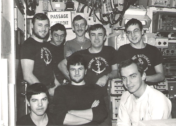 Tonnant bleu (1997 / 1998). les OMS dans la soute à béquilles (203). De gauche à droite: Médina, Blanchet, Oléron, Goulven, Bencquet, Dourin, Kerfriden, Thierry et Pavic.