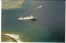 premier passage du bougainville dans la passe de fangataufa en octobre 1988