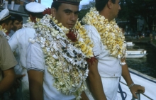 ( photo paul Rabaland ) Mlot torpilleur Labaste Marquisien de naissance . Charner 66-67. Arrivée à Papeete. Bien le bonjour du p'tit chef .