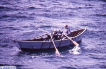Mars 1972 : St Pierre et Miquelon. Un doris échoué. (Photo : J. Dubuc)