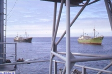 Juin 69 : Un chalutier en attente du ravitaillement du "Bourdais".