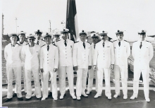 ( photo paul Rabaland )campagne 63- 64. En général c'était l'aumonier qui venait sur le Victor, mais là, je suppose que c'est une visite chez le dentiste.