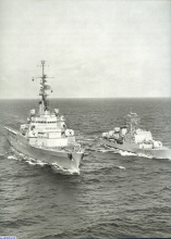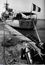 L'aviso escorteur Victor Schœlcher dans le canal de Suez en 1980 (Photo : Michel Sauvadet dit "le Mitch")