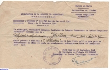 L'attestation de la qualité de combattant du matelot timonier Réné Hélou après le bombardement des port italiens du 14 juin 1940 (opération Vado).