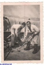1938/1940 : 3 marins de l'Albatros sur la passerelle devant un projecteur de scott.