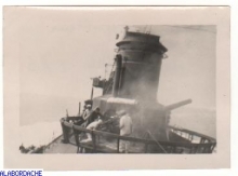 Sur la tourelle 3 de 138 mm on distingue son numéro de coque lumineux (72) qui permettait en navigation de nuit en ligne de file au bâtiment qui le suivait de savoir qui était son "matelot d'avant". (Photo X. Commentaire Daniel Maurice)