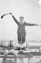 Janvier 1931, sur le haut du télémètre du Jaguar, le transmetteur Raymond Bézu