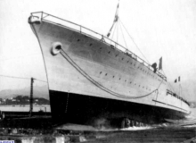 Lancement du Malin à l'arsenal de Lorient le 15 mars 1934