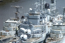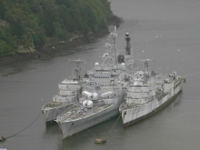 Amarrées à trois à couple: l'escorteur d'escadre La Galissonnière, Le croiseur lance-missiles Colbert et l'escorteur d'escadre Duperré.
