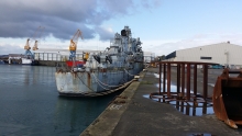 Le COLBERT à Brest le 6 mars 2016. Il a été sortie du cimetière des navires de Landevénnec avant un dernier voyage.