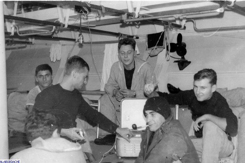 1963 : "Campagne mousson". Poste des trans bâbord avant se reconaitront-ils, j'ai perdu les noms. Photo prise par Henri Proteaux Matelot radiotélégraphiste, matricule 0563.2422