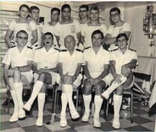 campagne de tirs 1968,tournoi de foot inter compagnies à Mururoa:l'équipe des électriciens