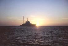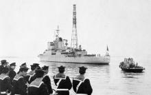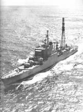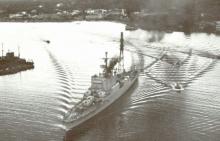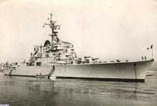 1957 : Le croiseur De Grasse au mouillage. (photo prise par le matelot de 1ère classe Georges Rini, matricule 35027 T 56, secrètaire des amiraux Barjot et Jozan)