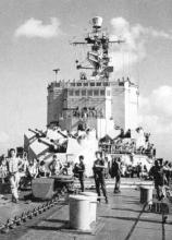 Photo en 1957 prise lors d'un amusement à bord avec déguisements (peut être l'acceuil des nouveaux