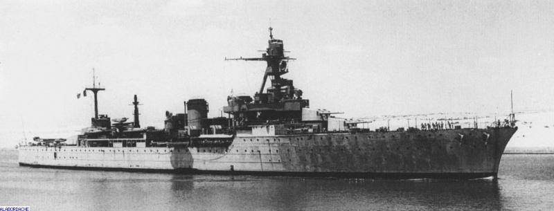 Décembre 1942 : Peinture défraîchie, le Duguay Trouin appareille d'Alexandrie ou il était interné par les britanniques depuis le 3 juillet, 1940. Modernisé il reprendra la lutte aux côtés des alliés.