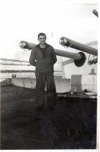 Robert BARTHELEMY mécanicien assis sur une tourelle du croiseur Jean de Vienne