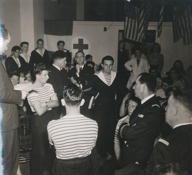 Philadelphie, 1943. Don du sang par les marins du Montcalm au profit des soldats alliés. Manifestation organisée par le Docteur Duquaire.