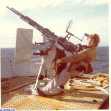 Exercice de tir au 20mm double, mon poste de combat. A bord de l'Acanthe, j'étais le "bout de bois"