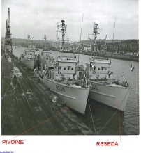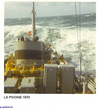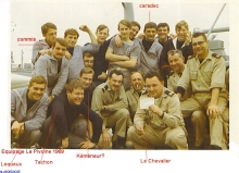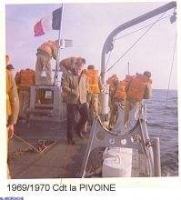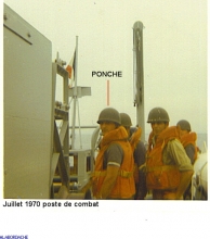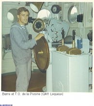 Le QM1 Lequeue à la barre et devant le transmetteur d'ordres à la machine.