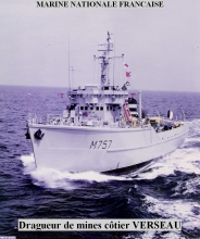 Le dragueur de mines côtier Verseau vers 1975. Sa cheminée est entourée d'une bande noire qui signifie qu'il est chef de division. (10ème Didra à Cherbourg). Comme le montre sa marque de commandement (un triangle aux couleurs nationales en tête de mat) son "Pacha" est un officier supérieur. Il peut être capitaine de corvette ("corvettar") ou capitaine de frégate ("frégaton"). Le Verseau fait route vers un port car son indicatif international (les 4 pavillons alphabétiques hissés à une drisse babord dans la mature) est battant, et son pavillon national n'est plus frappé à la corne (emplacement du pavillon de mer) mais au mat de pavillon arrière. Il peut se diriger vers un port militaire français car il n'a pas de pilote à bord (le signal flottant Code-Hotel n'est pas hissé), à moins qu'il ne se dirige vers un port civil ou un port militaire étranger et qu'il n'ait pas encore embarqué son précieux guide obligatoire. (Commentaire : Daniel Maurice - Photo X)