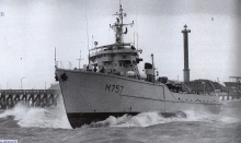 Une carène arrondie et pas de quille de roulis, un tirant d'eau maximum de 2,50 m, chargés dans les hauts avec une passerelle culminant à 9 m et un tirant d'air de 15,75 m, tous est réuni pour que les dragueurs "D" roulent beaucoup dès que le mer commençait à se former. Vent debout, ils étalaient bien grace à leur étrave haute de 6 m. Vent arrière, ils était difficile de tenir le cap. "Attention à gourverner" rappelait souvent le chef du quart à l'homme de barre, dès que celui ci embardait. (Commentaire : Daniel Maurice - Photo : X)