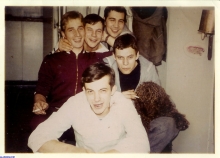 1969 : Cinq marins du Verseau et la mascotte Brutus. Se reconnaîtront ils ?