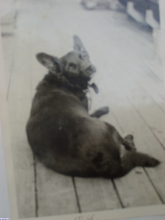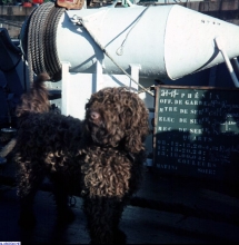 1969 : Brutus, la mascotte du Verseau. Derrière Brutus, on peut lire le service journalier du Phénix inscrit à la craie sur un tableau, appuyé sur un flotteur divergent MB5.