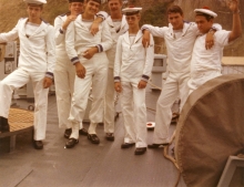 Photo prise à Djibouti probablement 68/69, nous sommes au mouillage devant les 7 frères ... Bonne base de plongée sous-marine , et très poissonneux , excellent poste pour le commis que j'étais à l'époque ....