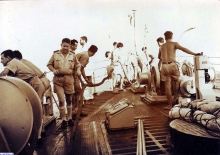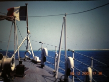 1963 : "Pour exercice, poste de combat....." plage avant de La Dieppoise à Djibouti.