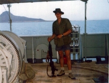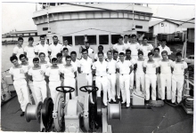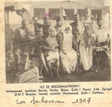 Equipe fout de La Malouine en mai 65 contre la Bayonnaise à Diégo-Suarez : qm1 timAcker, Mt bosco Debonne,qm él Walcowiack,qm1 méca Brolon,Mt bosco Prunet, qm Tertre, qm Angel, Lv2 Bondil,commandant en second, Sm méca Lemoine, Qm1 mécan Gélifier, sm mécano Le Tilly, qm éle Chiocca