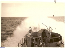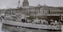L'Attentif quittant le port de Bayonne, dans les eaux de l'Adour.