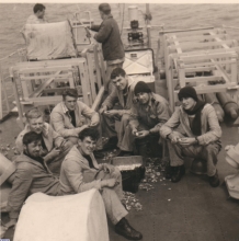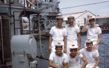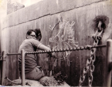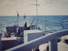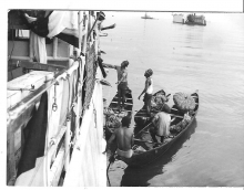 campagne de pêche 1965 préparation d'une deuxième zodiac.