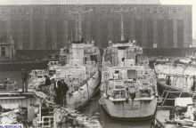 L'Opiniâtre (bande noire cheminée) et Le Fougueux en Hollande aprés désarmement