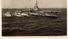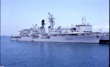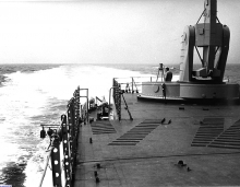 12 aout 1977 : Ravitaillement à la mer. Le Bouvet et le Foch sont ravitaillés par la Saône. (Photo : Service photo du Foch)