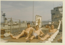 1973. Escale Porto Rico : Prolongeau, Dardé et Loviconni du service "artillerie"