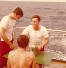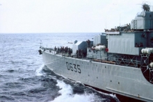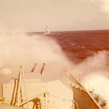 jour du depart campagne 73 74.La vedtte du Pacha suite a probleme sur le guideau.4 hommes a la mer j'etais brigadier avant.Beaucoup de chance d'en avoir rechappe ce jour la