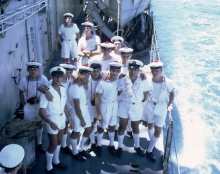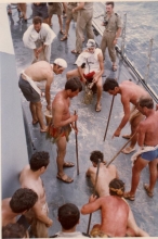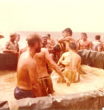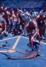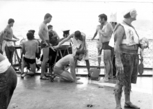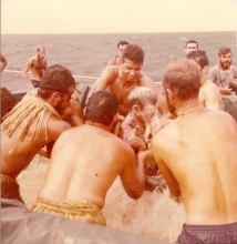 Rassemblement des néophites plage avant, passage de la ligne 1975.