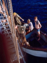 probleme sur le treuil de mise a l'eau de la vedette du pacha le jour du depart.Bilan 2 brigadiers le pilote et le mecano a l'eau.Coup de chance d'en rechapper ce jour la